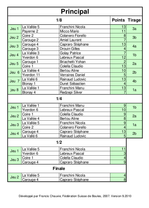Résultats Championnat Suisse tête à tête 2019
