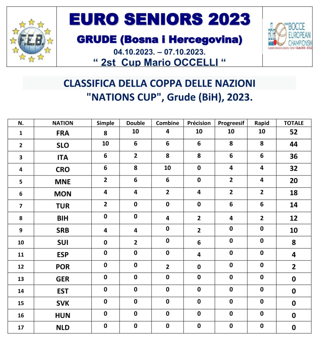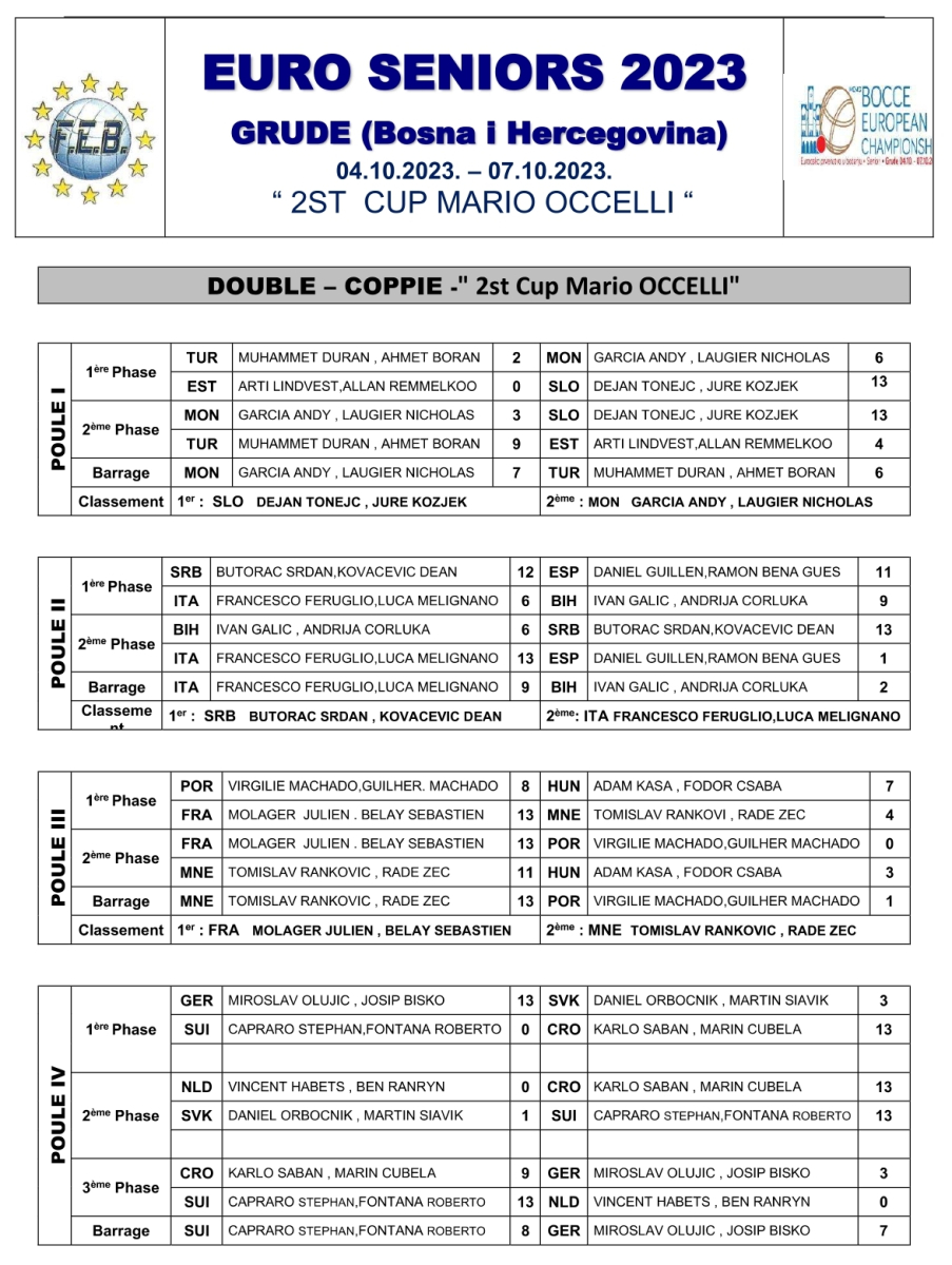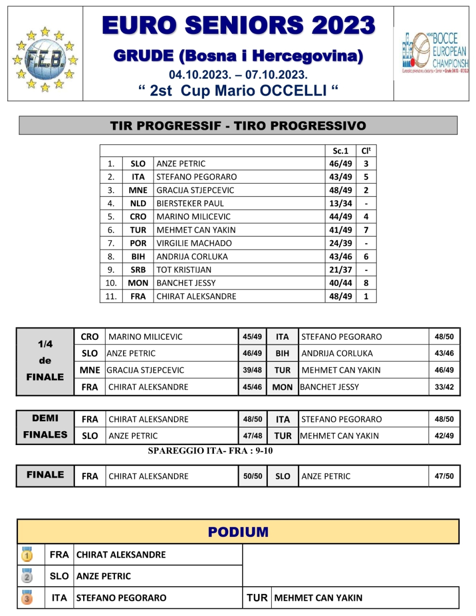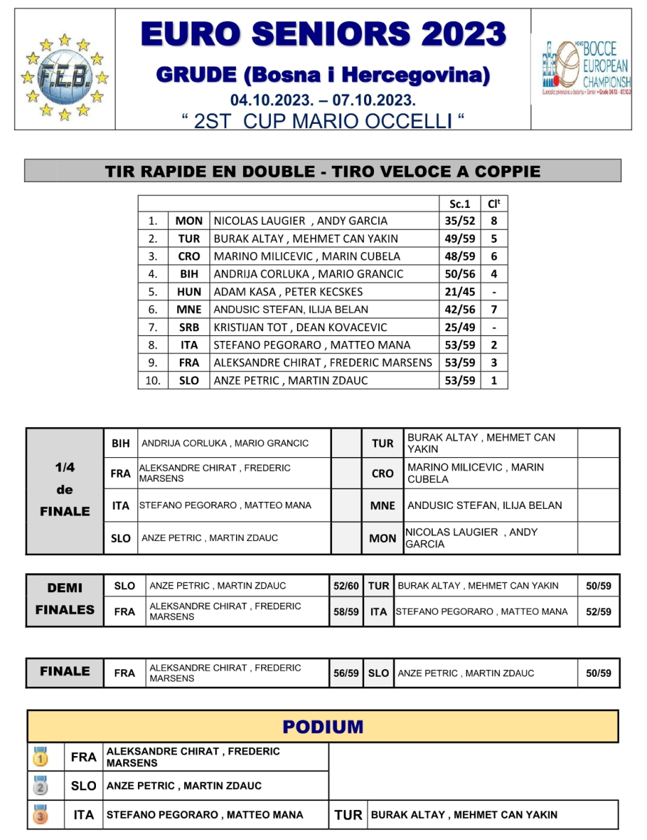 • Championnat d'Europe sénior 2023 à Grude (BA) : Le Bronze pour la Suisse !