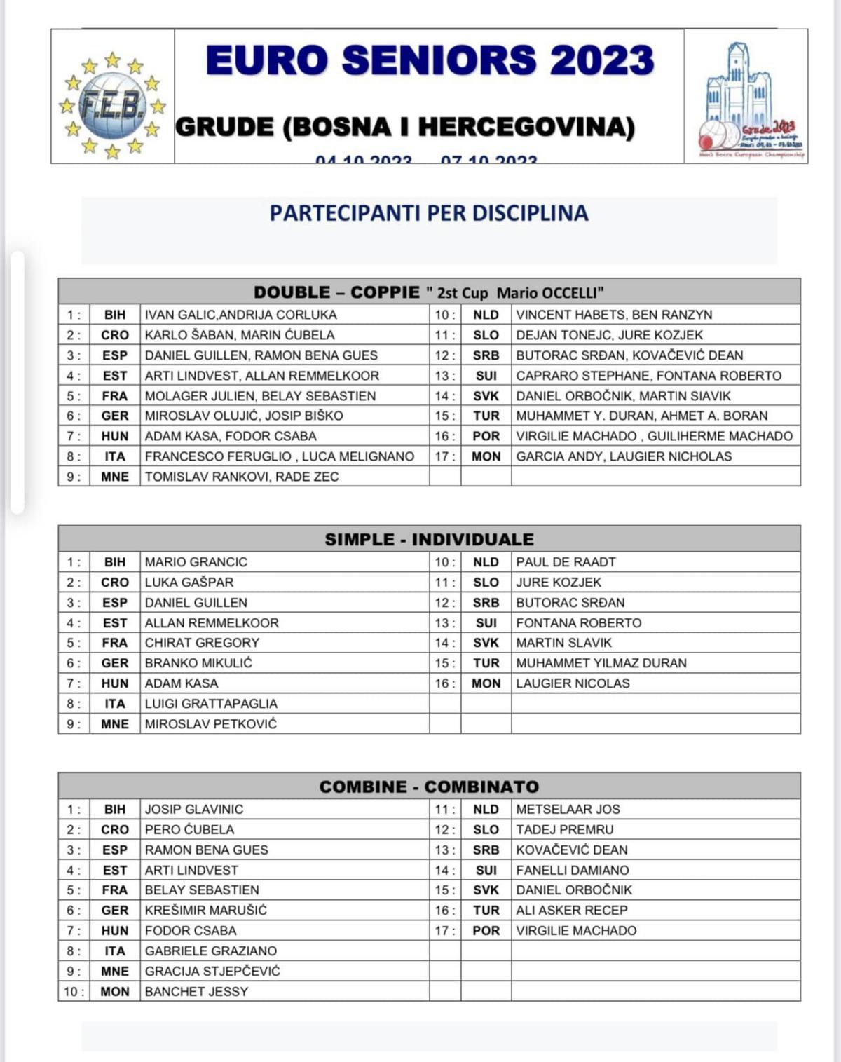Championnat d'Europe 2023 sénior à Grude (BA)